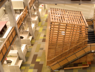The building was placed on the north half of the project site, and is at the visual termination of 8th Street and “B” Street. The main entrance, located near this intersection, strengthens the symbolic connection with the community. The siting of the building takes advantage of the favorable north-south sun orientation, allowing usage of the south orientation for day lighting into the building and the ambient light of the north elevation to create a controllable light filled working environment. With this building orientation, the Canyon drives the natural light into the building’s interior, where no work space Is more than 37-feet from natural light. This feature provides vertical visual communication, adding cohesiveness to the building’s organization, as compared to traditionally stacked floors organized around a central core. The headquarters is certified LEED® Silver.