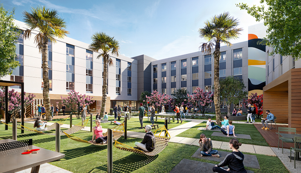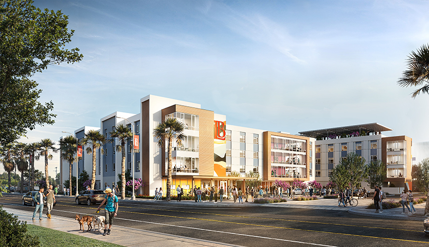 Designed in partnership with an integrated Design-Build team, the 440-bed student housing community elevates baseline criteria through a flexible framework of performance-driven enhancements. Highlights include a welcoming campus arrival sequence, an expanded 12,000 SF courtyard, and vibrant ground-floor amenities, such as a grab-and-go market, tech commons, and multipurpose spaces, crafted to foster connection and enrich student life.