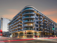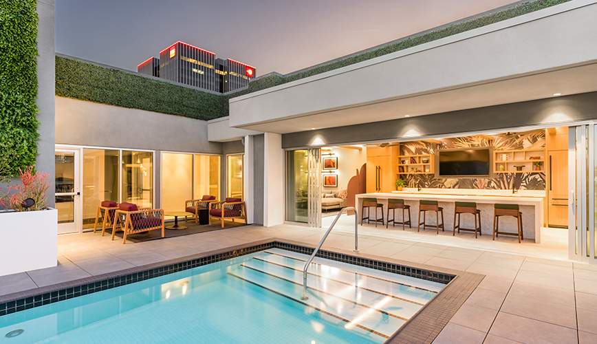 Located within the Hollywood community of the Los Angeles area, this new mixed-use development is a seven-story building with 276 residential units - 13 of which are affordable housing for ‘very low income’ households. The project includes an approximately 27,000 SF Bristol Farms grocer and 318 parking spaces.
