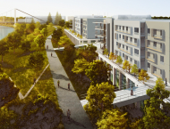 The centerpiece of the Master Plan is the new Hornet Greenway, the product of an interdisciplinary planning effort involving the campus infrastructure team, the master plan architects and the landscape architects. The Greenway creates a completely new central pedestrian spine and bio-swale system that will allow the campus to improve its stormwater management system with comprehensive, sustainable techniques to detain, clean and divert stormwater before returning it to the adjacent American River.