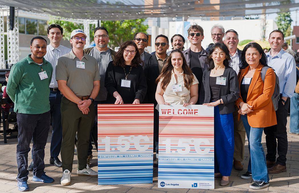AC Martin Sustainability ERG members Athenel Trazo, Matt Wister, and Hiba Charek-Brewster (photographed above left to right) participated in the 2026 AIA Los Angeles 1.5°C Symposium on Climate Change on April 17, 2026.